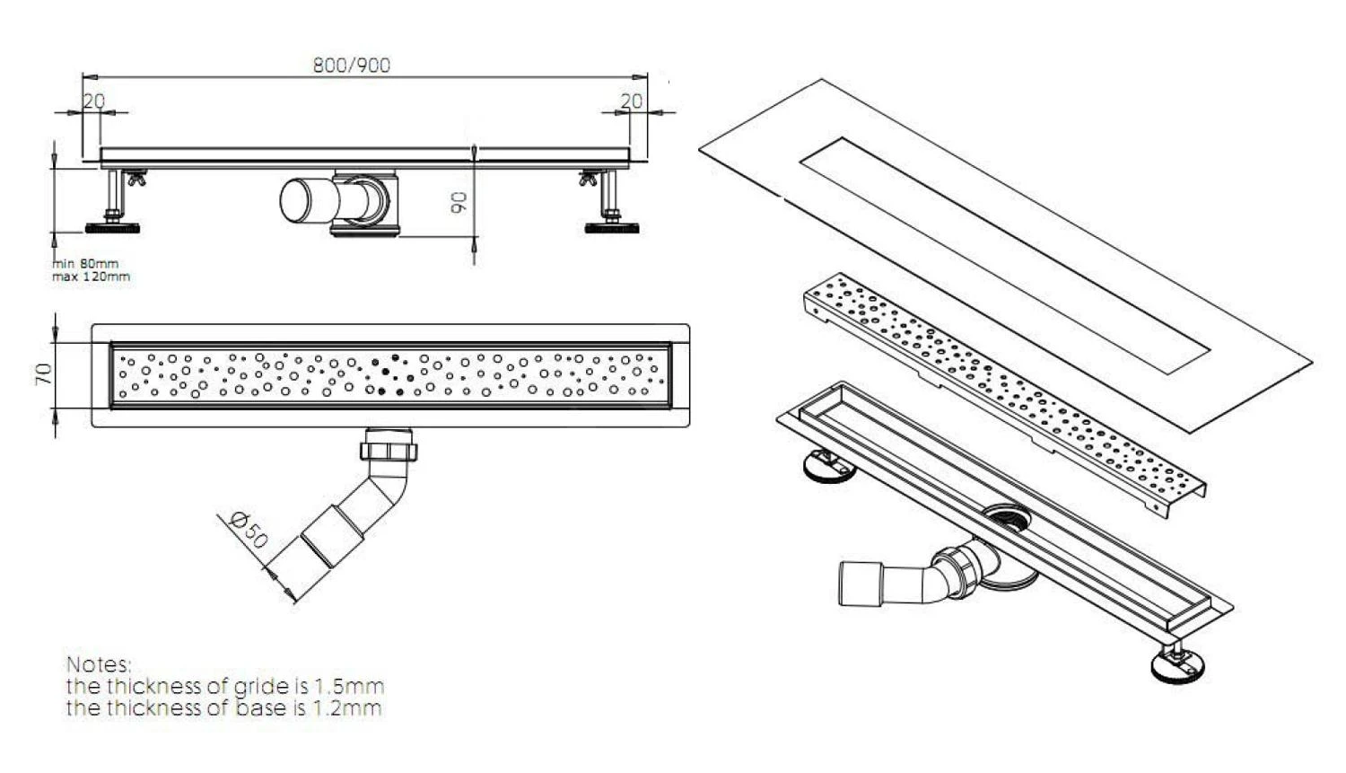 - la canaleta se drena hacia el sifón, por lo que el agua no queda estancada en el canal después de la ducha