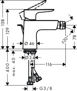 Hansgrohe Metropol – Grifo Monomando De Bidé Con Conjunto De Desagüe Push-Open, Cromo 74520000