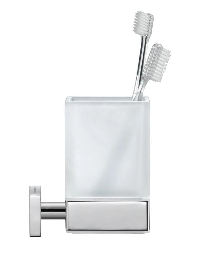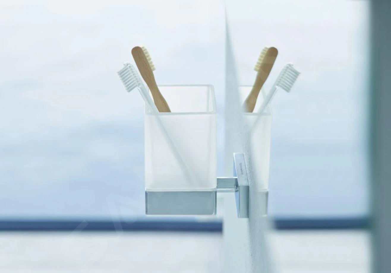Ideal Standard IOM Square – Vasos Para Cepillos De Dientes Con Soporte, Cristal Opaco/cromo E2205AA