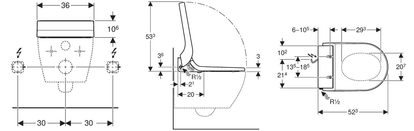 - La temperatura de calentamiento del asiento del WC se puede ajustar con la aplicación Geberit AquaClean