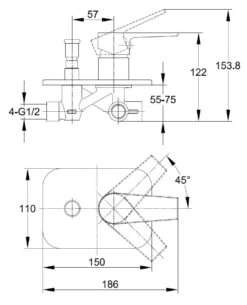 Grifo de pie para lavabo Finoris 260, para cuenca de lavabo