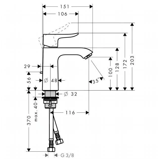 Los grifos ComfortZone ofrecen mayor libertad de movimiento en el lavabo o fregadero. Este grifo ofrece una ComfortZone 110. El grifo garantiza una comodidad suficiente incluso en condiciones de espacio reducido, por ejemplo al lavarse las manos en lavabos pequeños o en el baño de huéspedes.