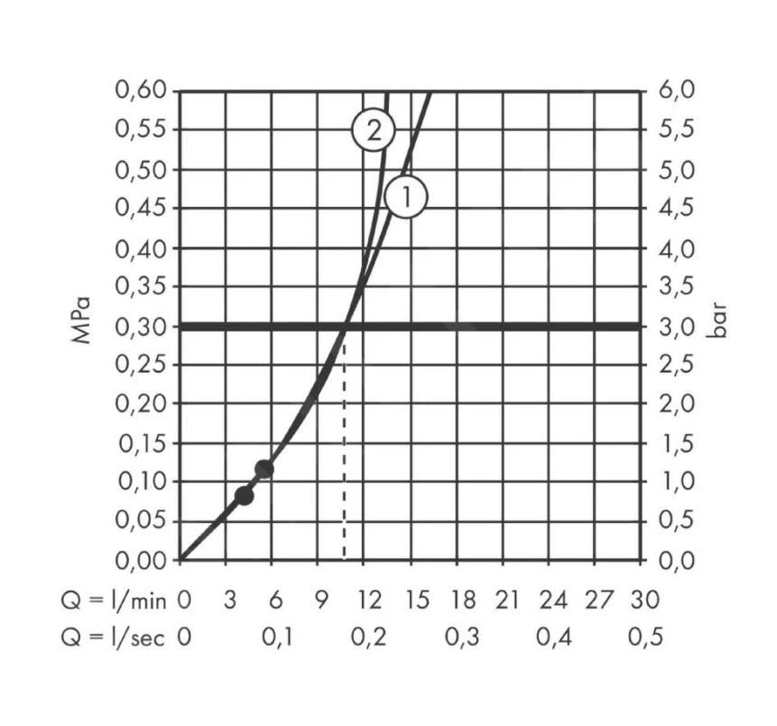 - caudal máximo a 0,3 MPa: 11,5 l/min
