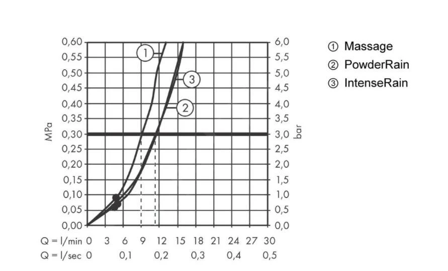 - chorros de ducha: PowderRain, IntenseRain, chorro de masaje