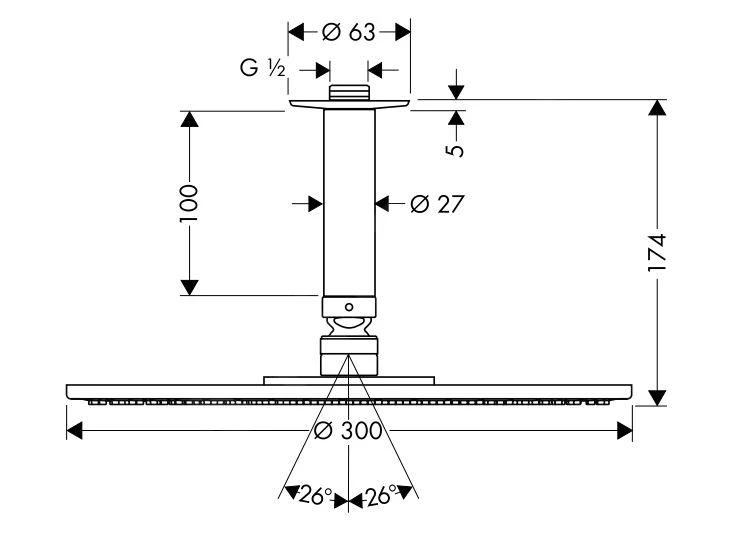 - tamaño de la alcachofa de ducha: 300 mm
