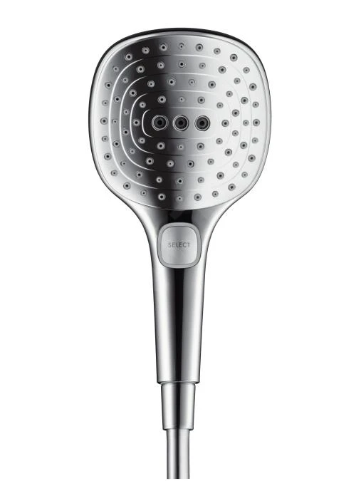 Con la teleducha Hansgrohe Raindance Select E 120 3jet, ducharse a diario será una experiencia de confort XXL. De la alcachofa de ducha de 120 mm de diámetro salen tres tipos de chorro de agua. Puedes cambiar de uno a otro con sólo pulsar un botón,