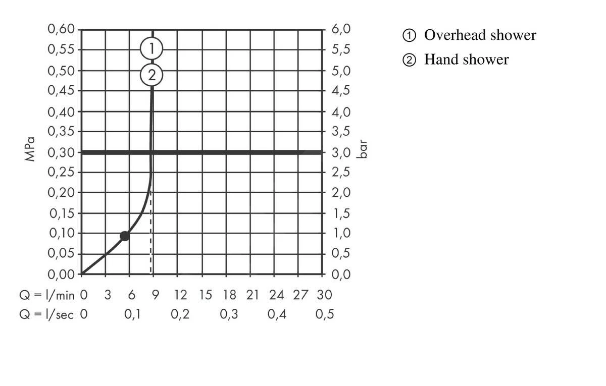 - EcoSmart, caudal máximo a 3 bares: 8,7 l / min