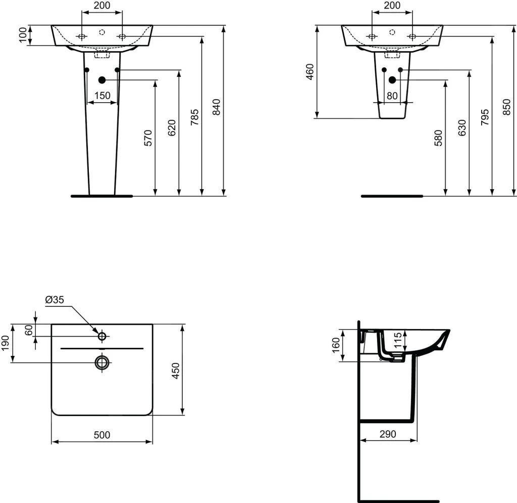 Ideal Standard Strada II – Lavabo 500×350 Mm, Sin Orificio Para Grifo, Blanco T299901