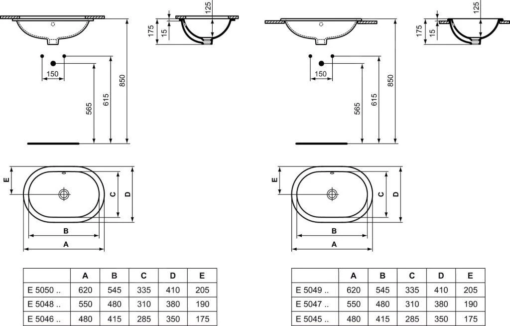 Ideal Standard Connect – Lavabo Encastrado, 480×350 Mm, Con Rebosadero, Blanco E504501
