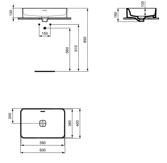 Ideal Standard Strada II – Lavabo 500×350 Mm, Sin Orificio Para Grifo, Blanco T299901
