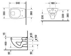 Duravit White Tulip – Inodoro Suspendido HygieneFlush, Rimless, HygieneGlaze, Blanco 2576092000