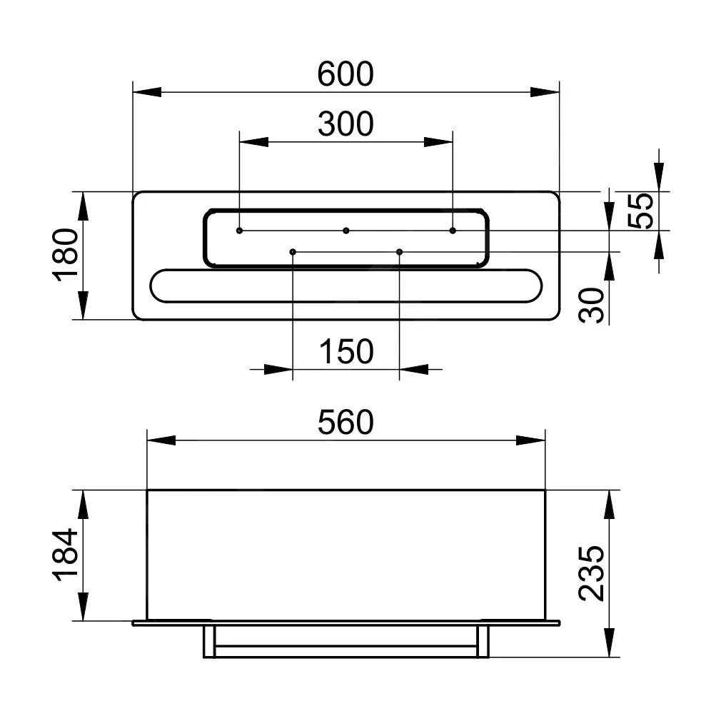 - dimensiones totales: 180 x 600 x 235 mm