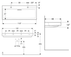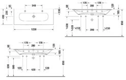 Geberit ICon – Lavabo Doble 1200×480 Mm, Con Rebosadero, 2 Orificios Para Grifo, Blanco 501.838.00.1