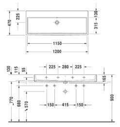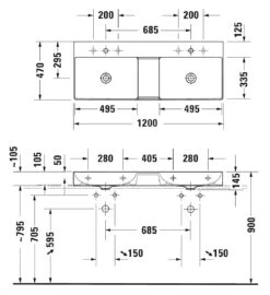 Duravit Vero – Lavabo Doble 1000×470 Mm, Con 2 Orificios Para Grifería, Blanco Alpino 0454100024
