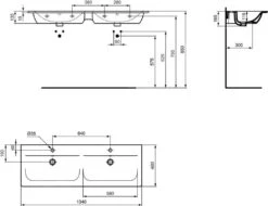 Ideal Standard Connect Air – Lavabo Doble De Mueble, 1340x160x460 Mm, Con Ideal Plus, Blanco E0272MA