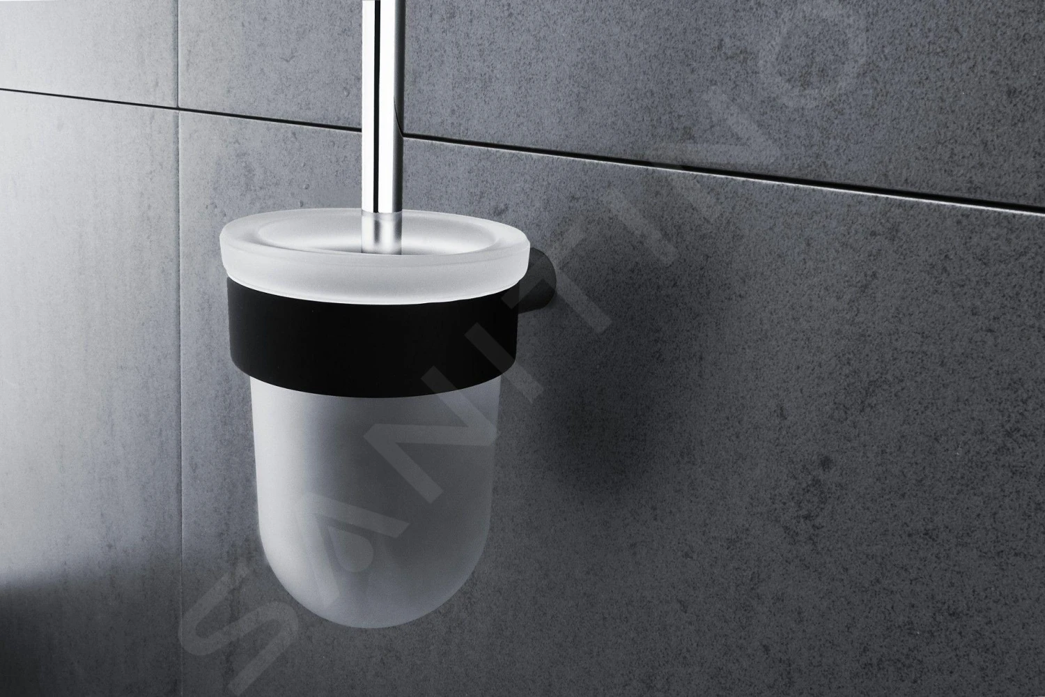 Escobilla de WC de pared con recipiente bajo hecho en vidrio