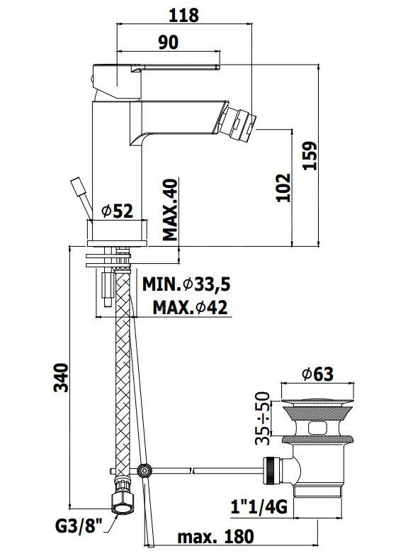 - con desagüe de cierre 1 1/4″, tapón de 63 mm de diámetro