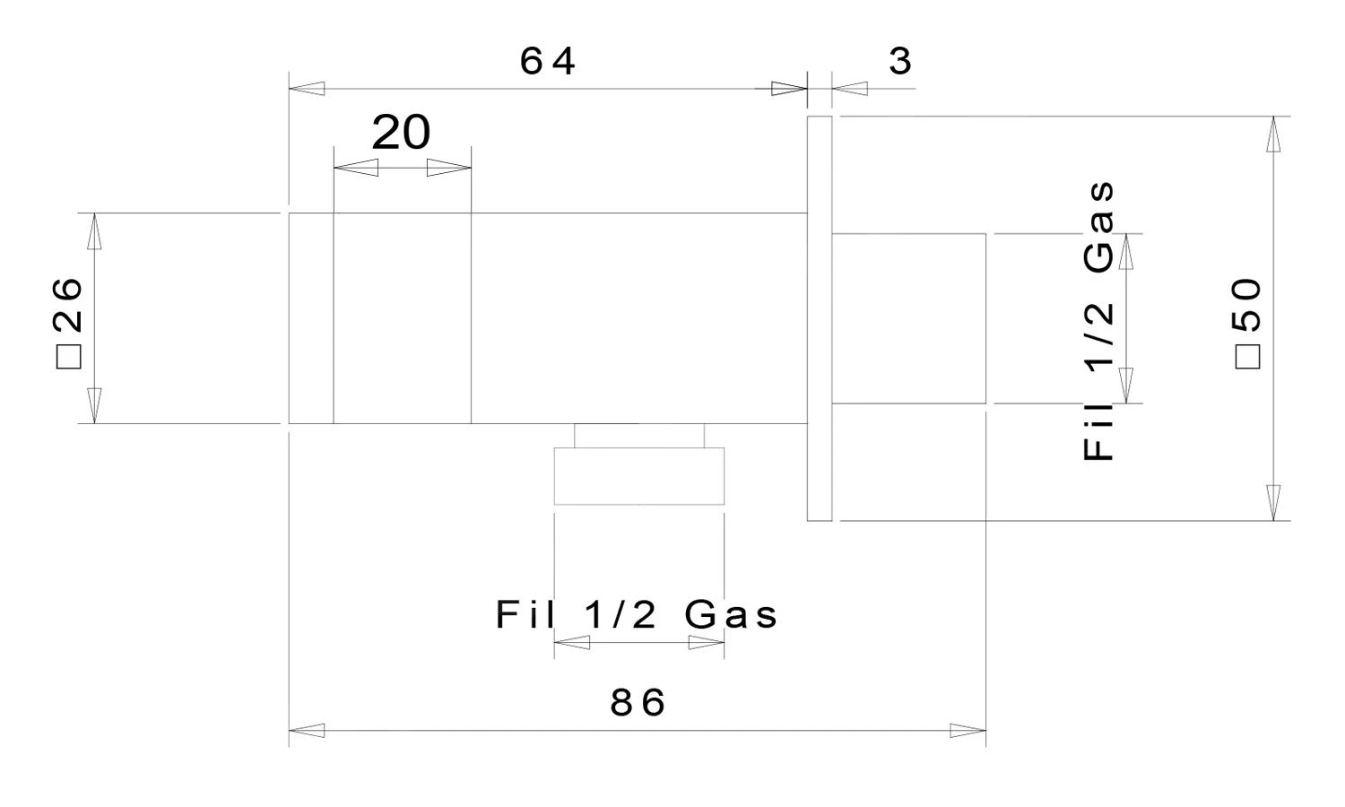 - rosca exterior 1/2″