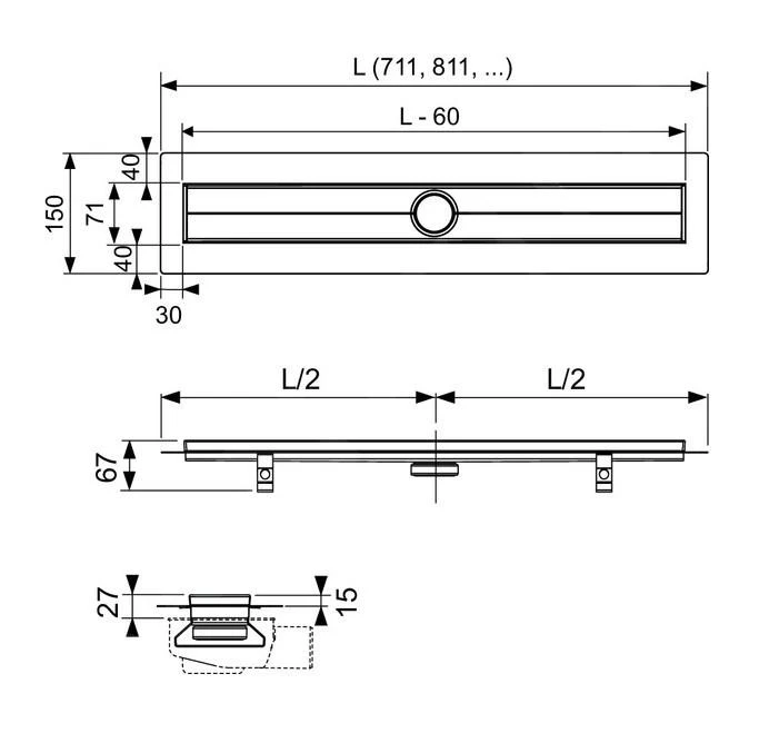 - longitud 800 mm, longitud de montaje 811 mm